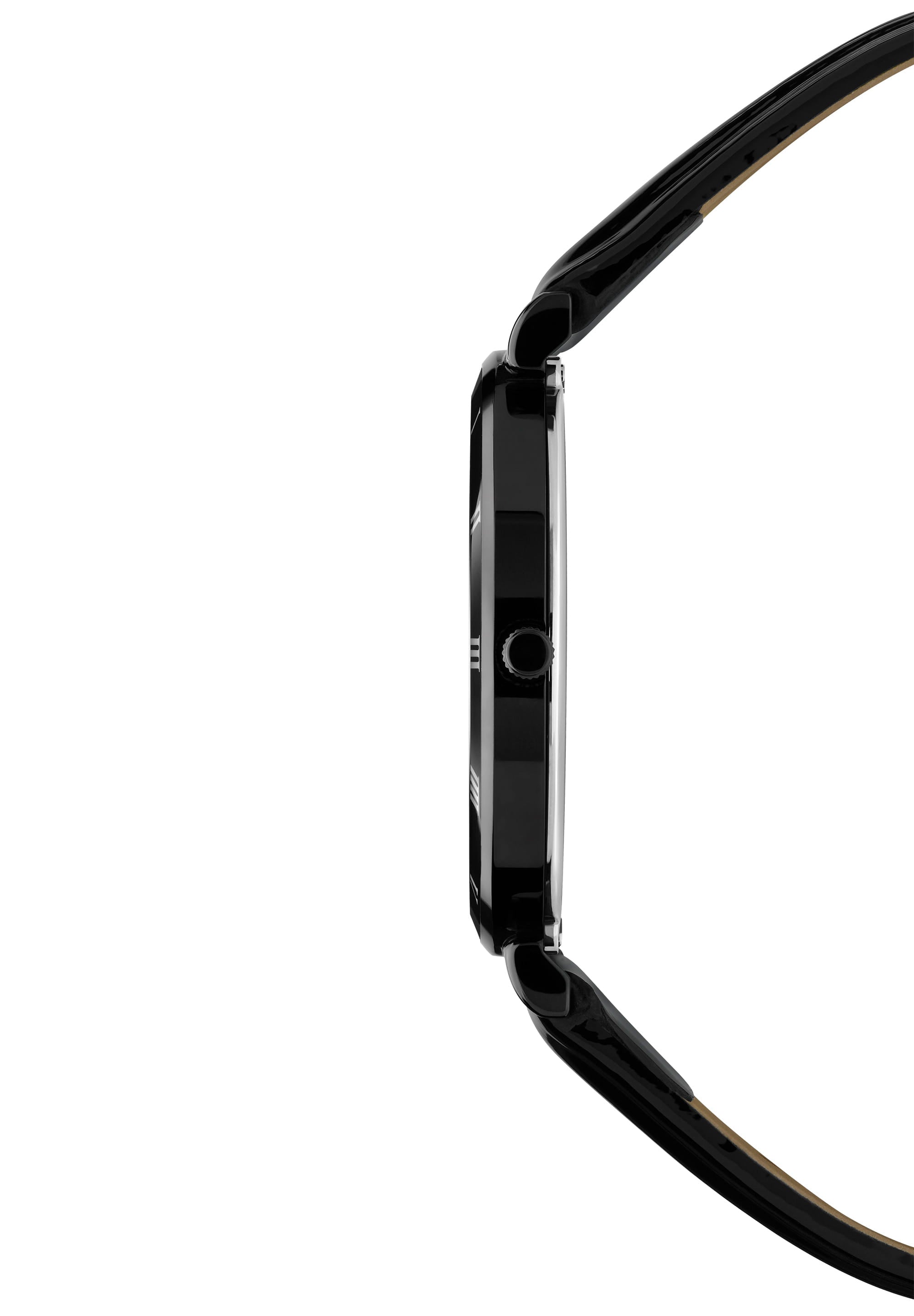 The watch comes with a smooth black genuine leather strap that not only enhances its overall look but also provides comfort during wear. The strap is made from genuine patent leather, ensuring a luxurious feel against the skin. Additionally, the band width of 18mm allows for easy interchangeability, thanks to the quick-release feature. This means you can easily switch out the strap to match your outfit or mood.