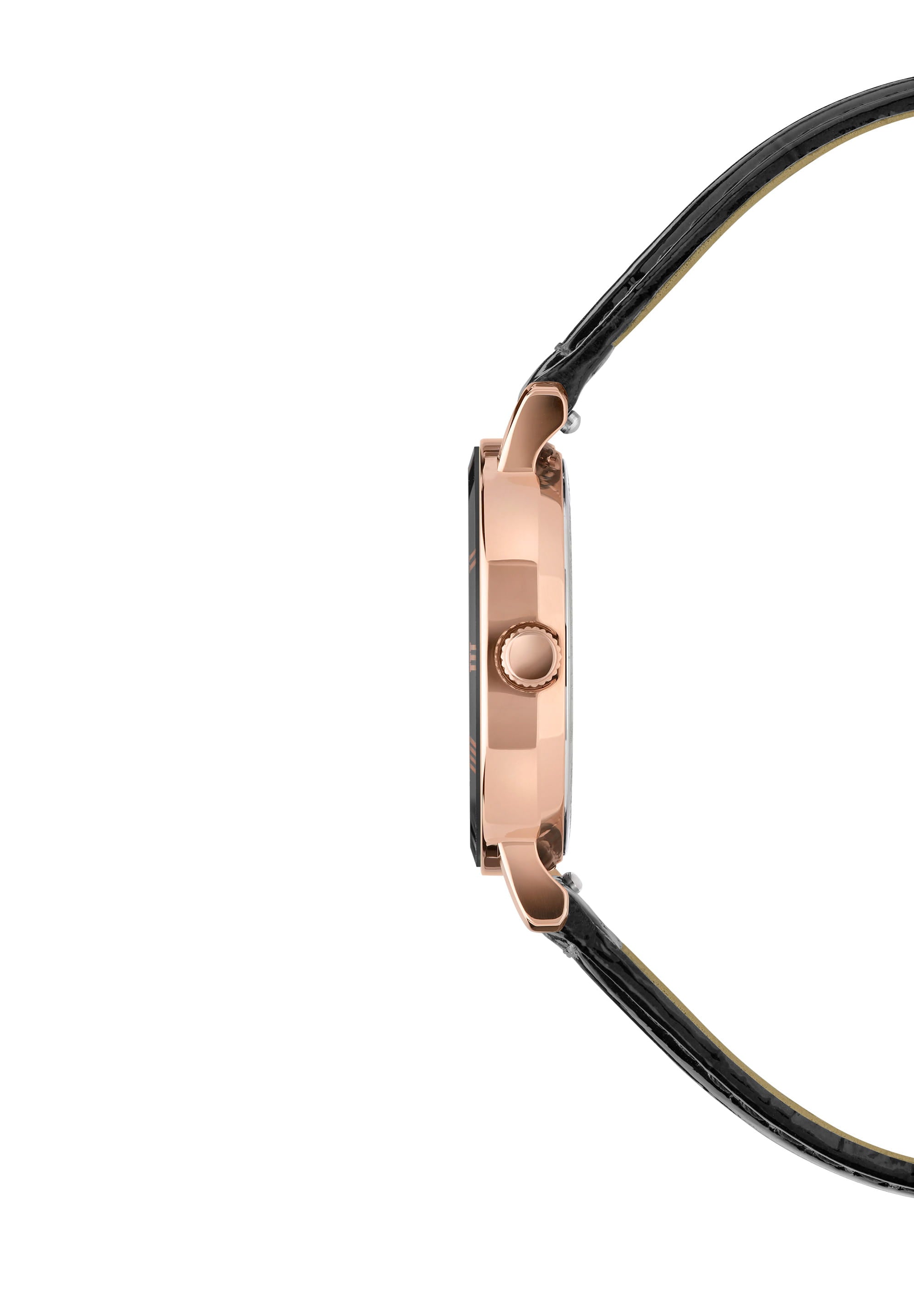 The Roma Swiss Ladies Watch J2.309.S is the perfect accessory for women who value both style and functionality. This exquisite timepiece combines elegance with practicality, ensuring you are always fashionably on time. With its stunning black bezel and rose-gold Roman numerals, this watch is designed to make a statement on your wrist.