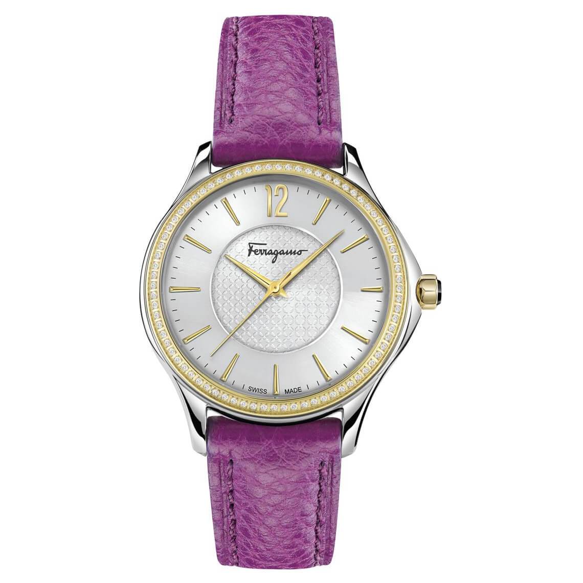The Salvatore Ferragamo FFV030016 is designed with comfort in mind. It features a purple leather calf strap that is soft against the skin and adds a pop of color to your outfit. The secure deployment buckle ensures that the watch stays securely on your wrist, providing peace of mind as you go about your day.