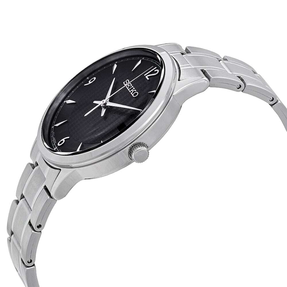 The Seiko SGEH81 Silver Stainless Steel Black Dial Men's Dress Quartz Watch is a perfect blend of elegance and functionality. Designed for the modern man, this watch features a sophisticated black dial that complements its sturdy stainless steel construction. With a case diameter of 40mm, it is designed to fit comfortably on the wrist while making a bold statement.