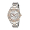 The watch features a robust stainless steel case measuring 38mm in diameter, ensuring durability while maintaining a lightweight feel. The fixed rose gold-tone bezel is adorned with sparkling Swarovski crystals, adding a touch of glamour to the overall aesthetic. The silver dial is both stylish and easy to read, making it a practical choice for daily wear.