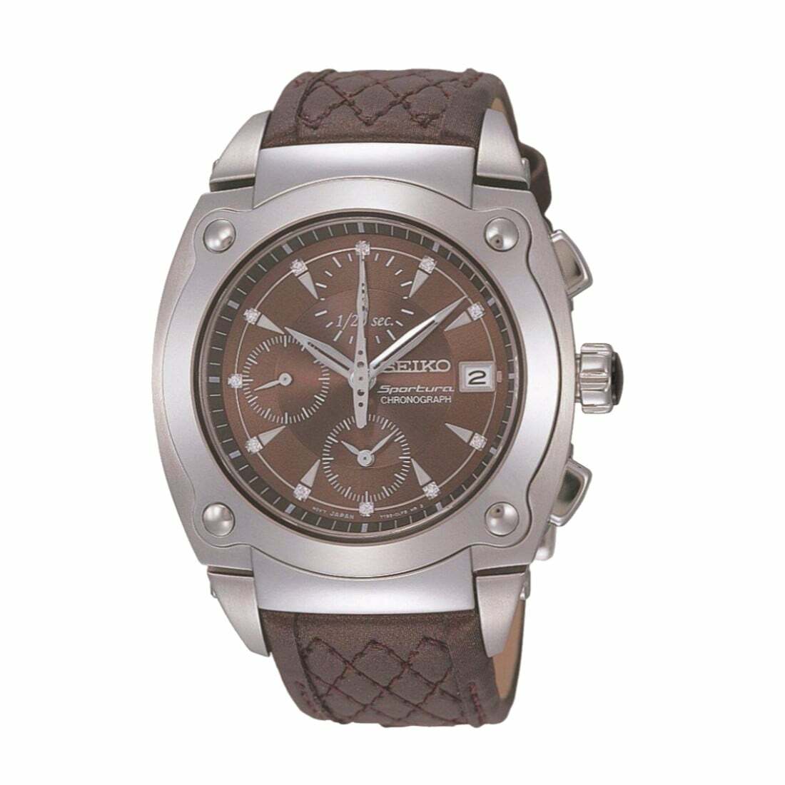 Dropship Seiko SNDZ85 Sportura Brown Dial Brown Leather Diamond Chronograph
