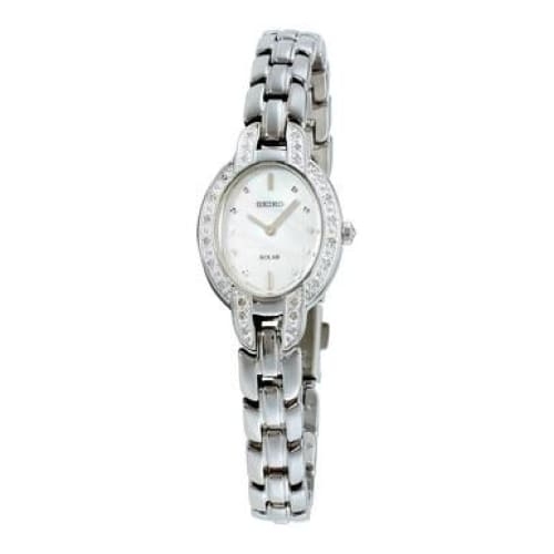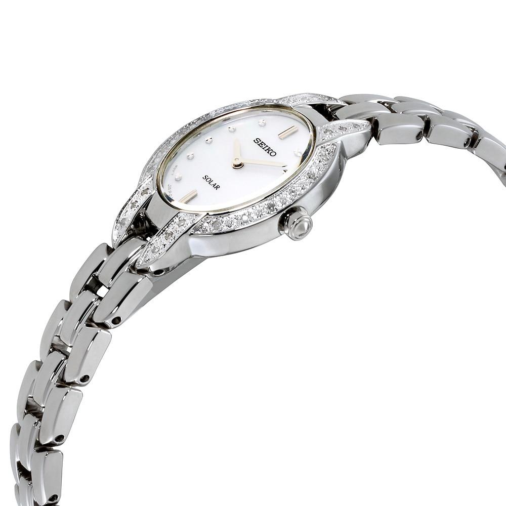 The Seiko SUP323 Tressia Mother of Pearl Dial Diamond Accent Women's Watch is a remarkable timepiece that embodies elegance and sophistication. With its stunning oval mother of pearl dial and sparkling diamond accents, this watch is designed to make a statement on any woman's wrist. The exquisite craftsmanship and attention to detail make it a perfect accessory for both casual and formal occasions.