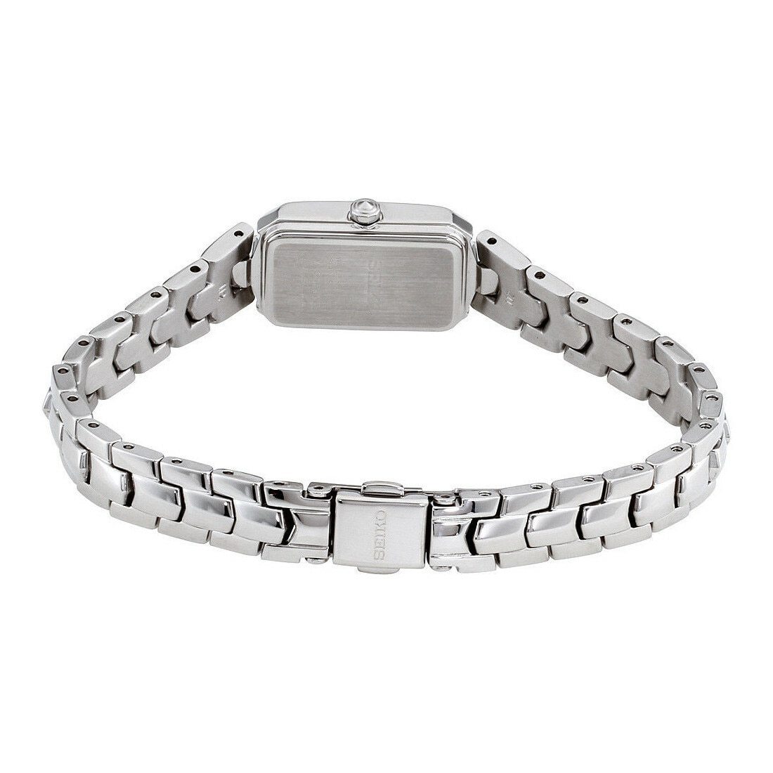 Equipped with a silver stainless steel bracelet, the Seiko SUP329 offers both comfort and durability. The bracelet secures with a fold-over push-button clasp, providing a secure fit while being easy to put on and take off. The band width is 4 millimeters, making it a delicate yet sturdy accessory for any outfit.
