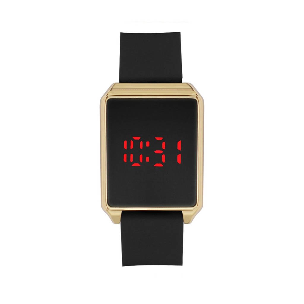Selma Touch LED Watch featuring a black rubber band and gold alloy case, showcasing a modern and stylish design.