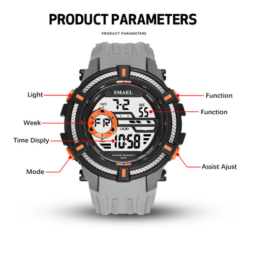 • Feature: Shock Resistant,Stop Watch,LED display,Auto Date,Week Display,Water Resistant,Diver,Back Light,Chronograph,Alarm,Luminous,Repeater