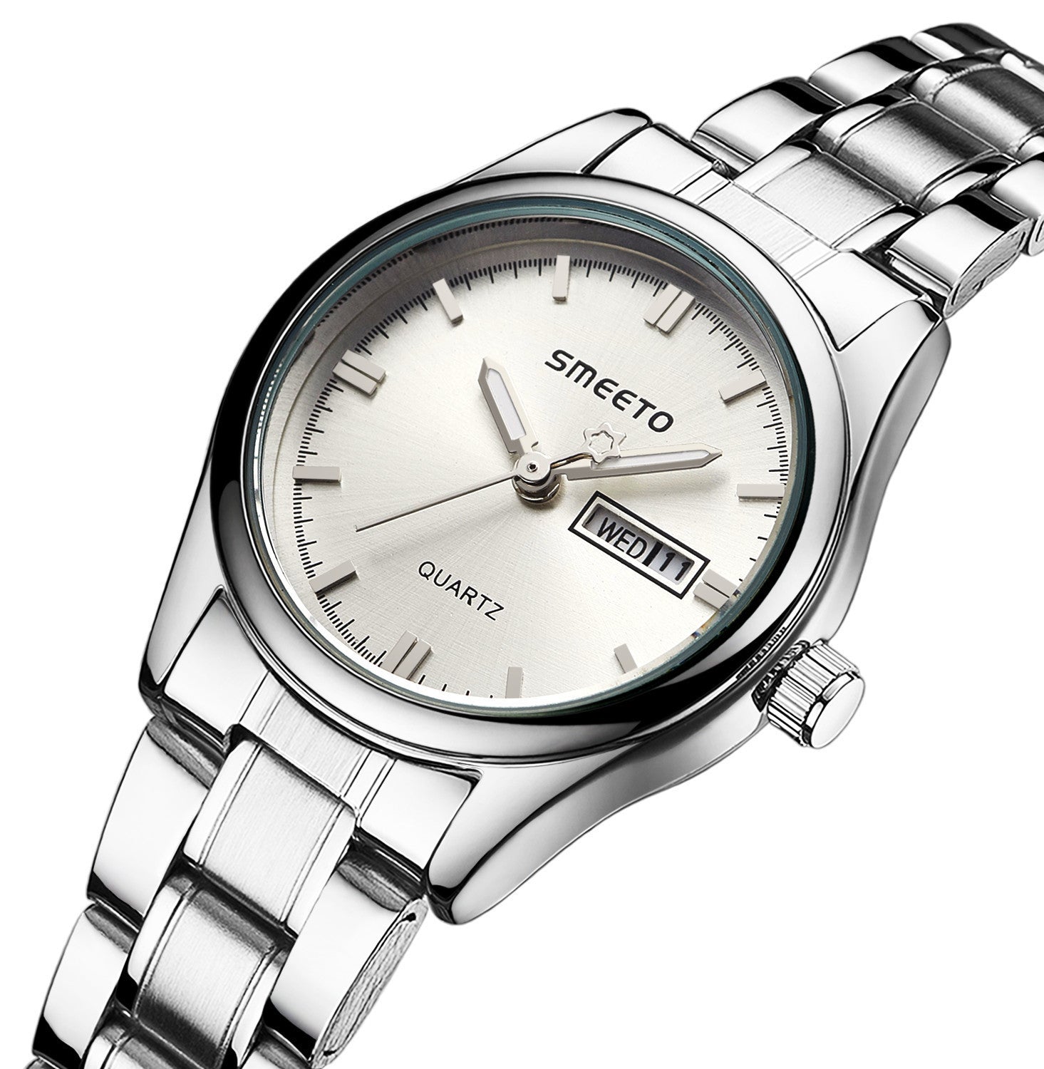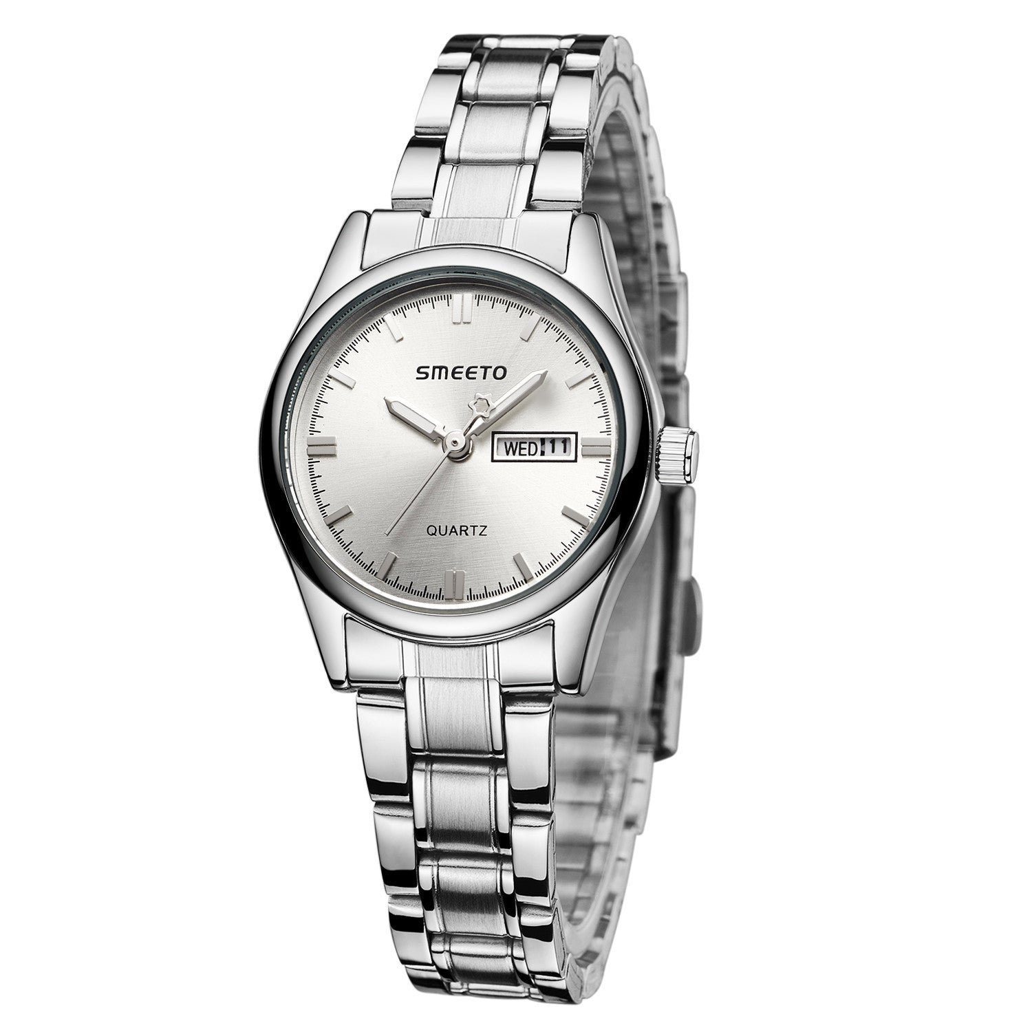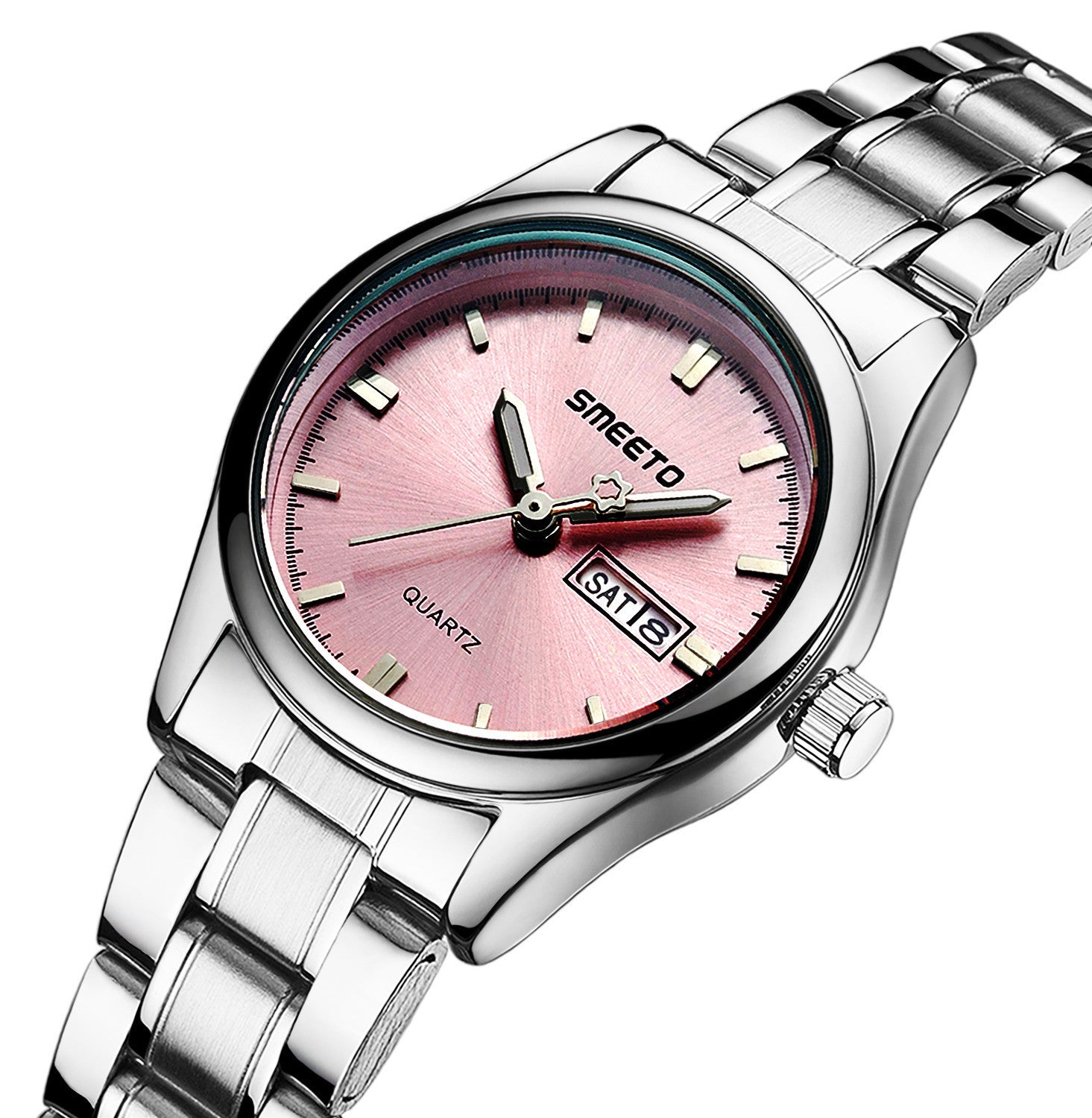 A stylish stainless steel strap watch designed for office ladies, featuring a sleek design and a clear pointer display.