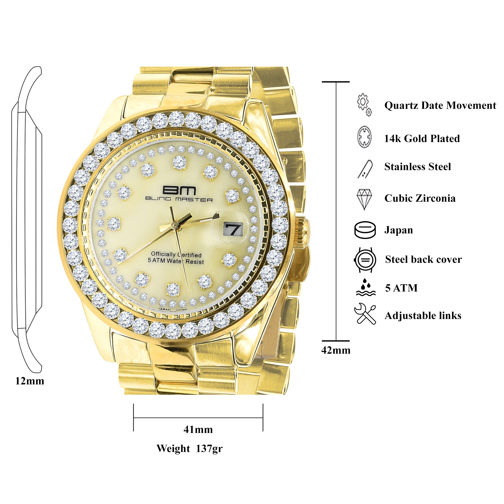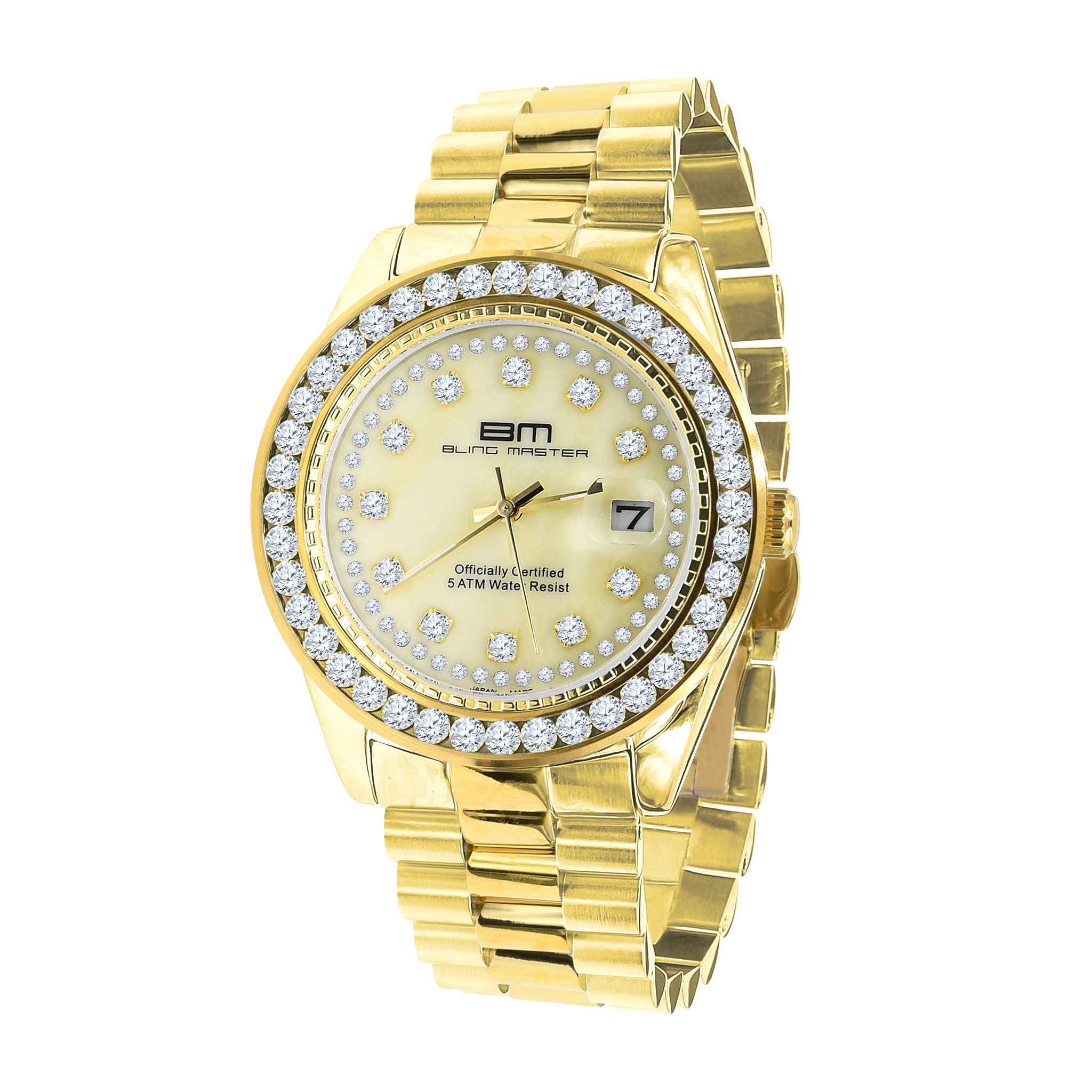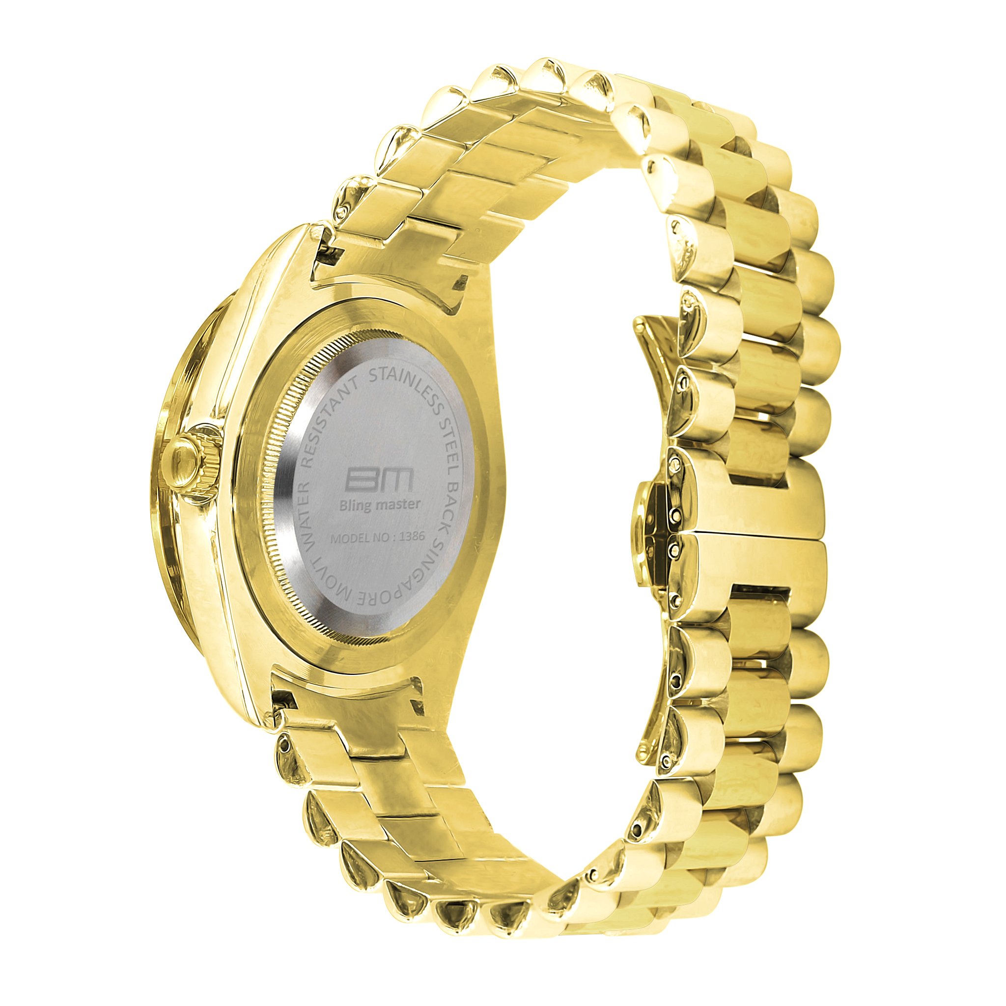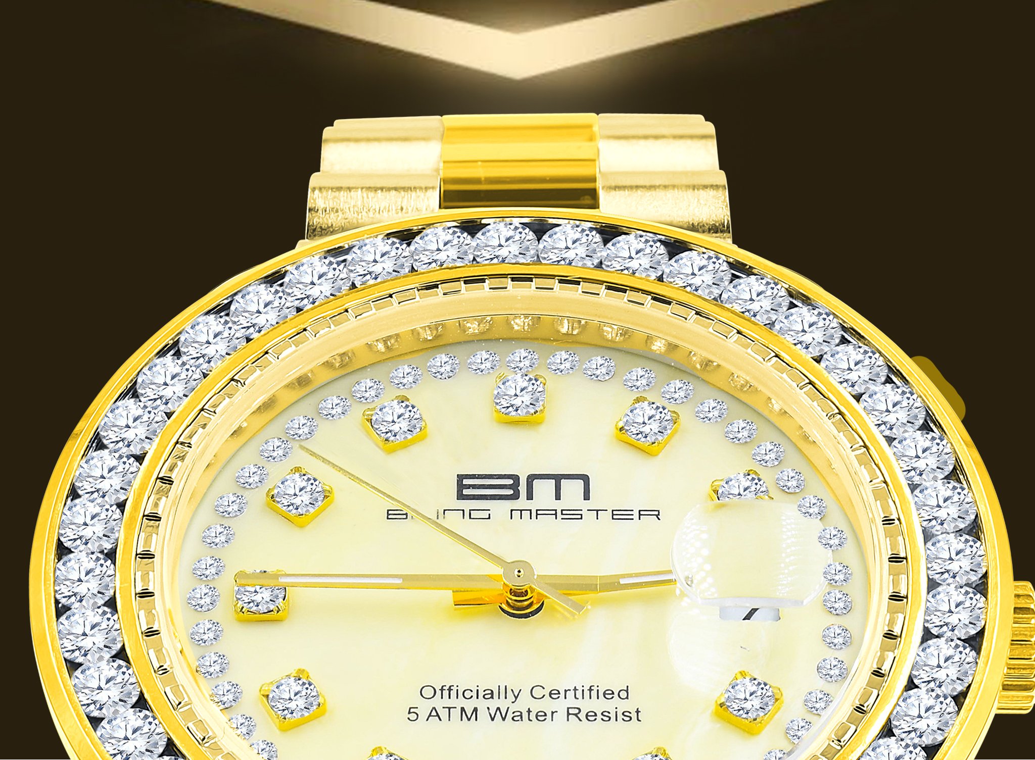 STEALTH Steel Watch featuring a diamond-studded bezel and gold texture, showcasing luxury and elegance.