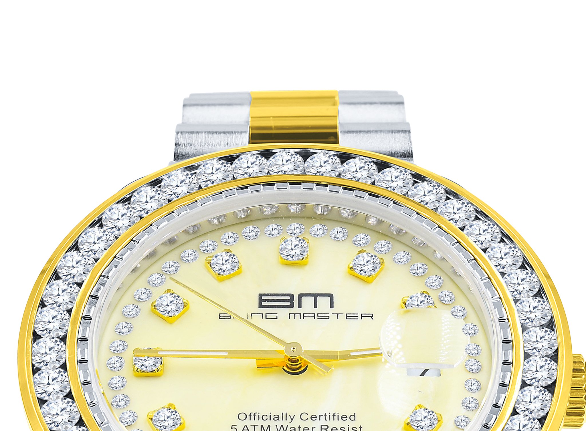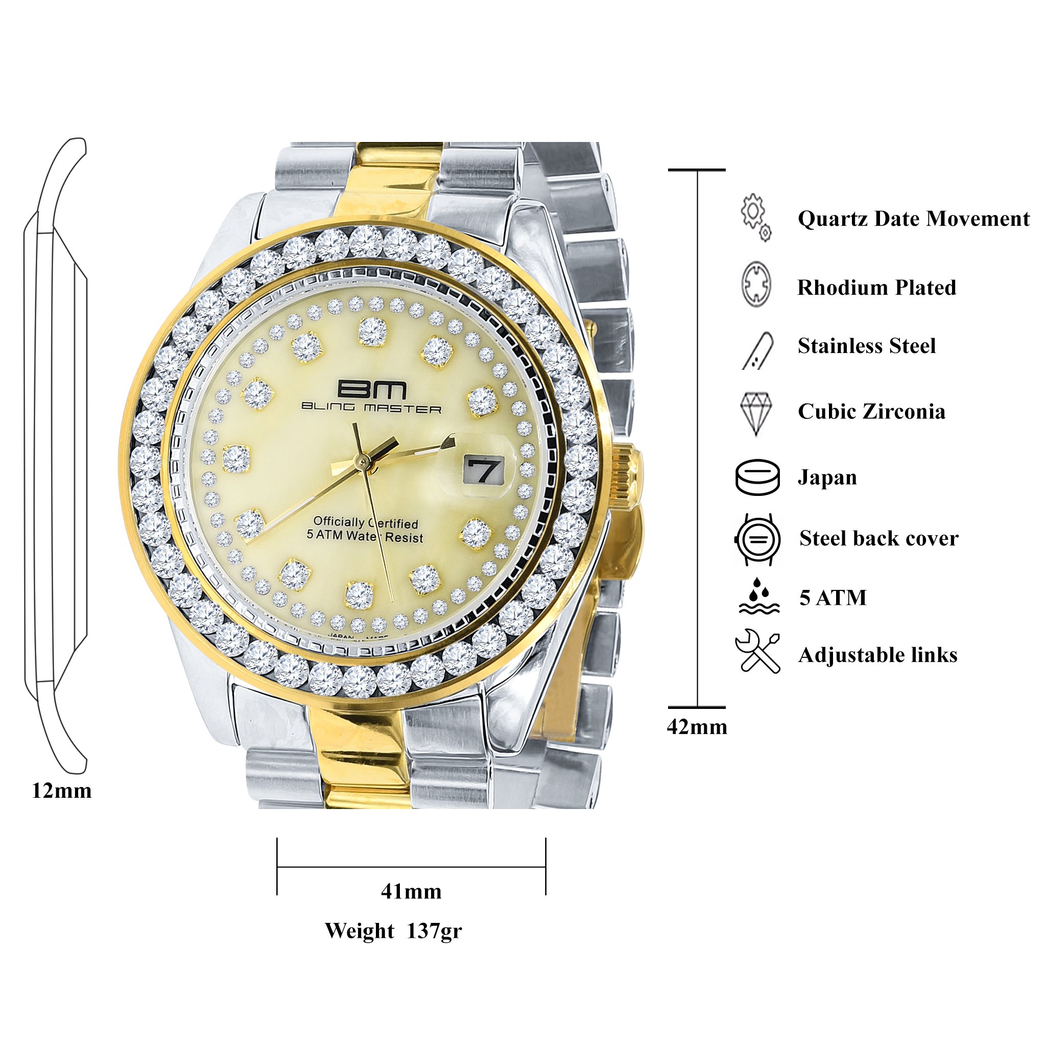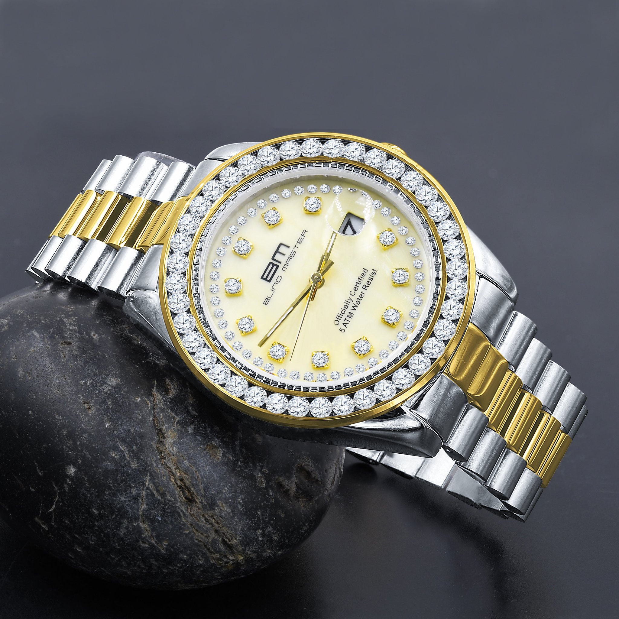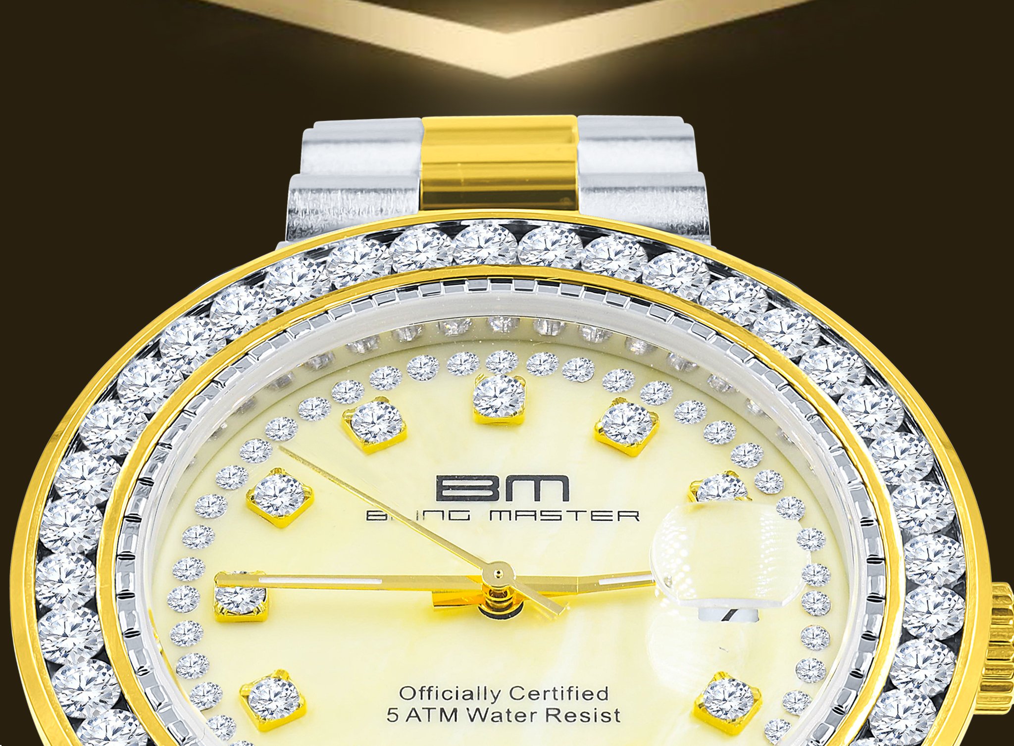 The STEALTH Steel Watch is not just a timepiece; it is a statement of elegance and sophistication. Crafted with meticulous attention to detail, this watch features a stunning gold texture that exudes charm and glamour. The unique design is complemented by a bezel adorned with 12 sparkling diamonds, making it a perfect accessory for any occasion.