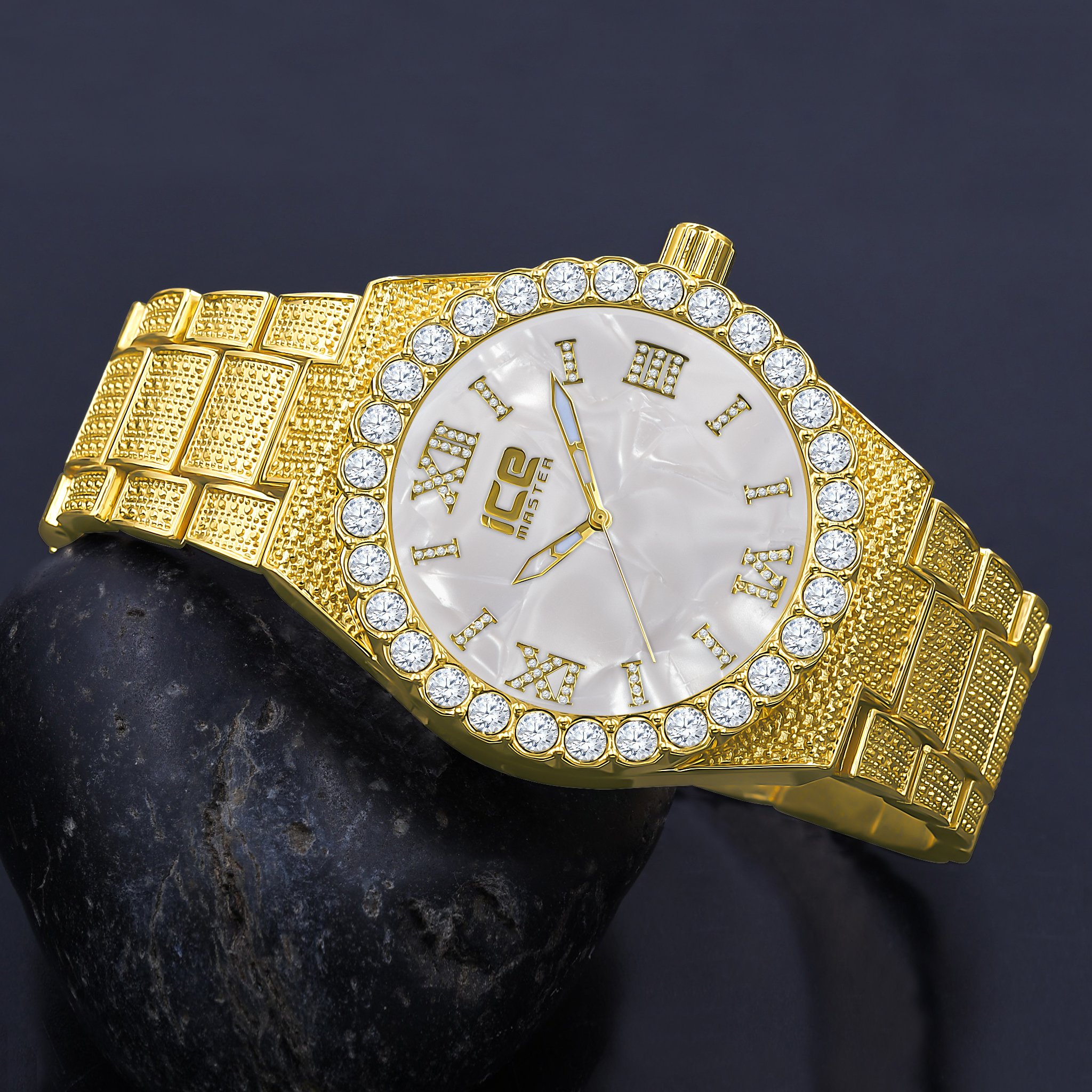 The watch features a flamboyant dial adorned with Roman hour indicators, each embellished with tiny white stones that catch the light beautifully. This attention to detail not only enhances its visual appeal but also adds a touch of luxury to your wrist. The flashy metal strap complements the overall design, making it suitable for both casual and formal occasions.