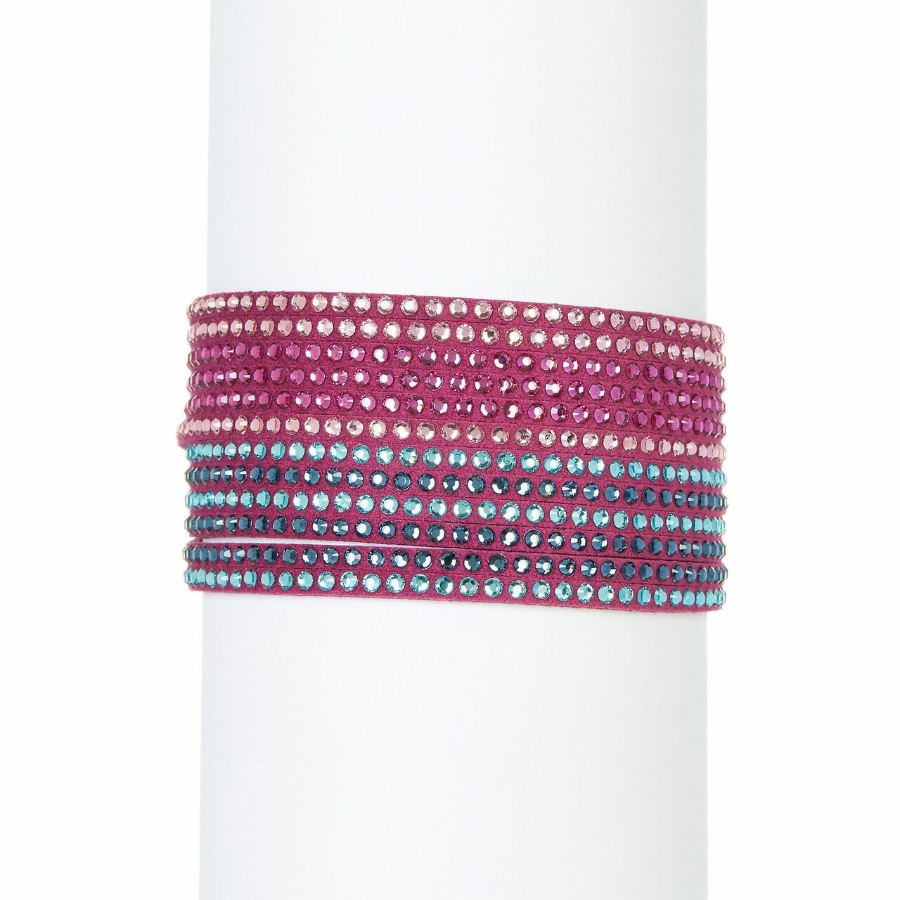 The Swarovski 5202465 Slake 2 in 1 Fuchsia Alcantara Fabric Bracelet is a stunning accessory that combines elegance and versatility. This beautifully designed bracelet features a unique blend of fuchsia and blue tones, making it a perfect addition to any outfit. The eye-catching crystals set within the bracelet add a touch of glamour, ensuring that you stand out in any crowd.