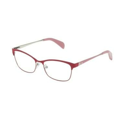The Tous VTO337-0KA5 Pink Silver Square Women's Metal Eyeglasses are a stunning addition to any eyewear collection. Designed with a contemporary flair, these eyeglasses are perfect for women who appreciate both style and functionality. The elegant pink and silver color combination adds a touch of sophistication, making them suitable for various occasions, from casual outings to formal events.
