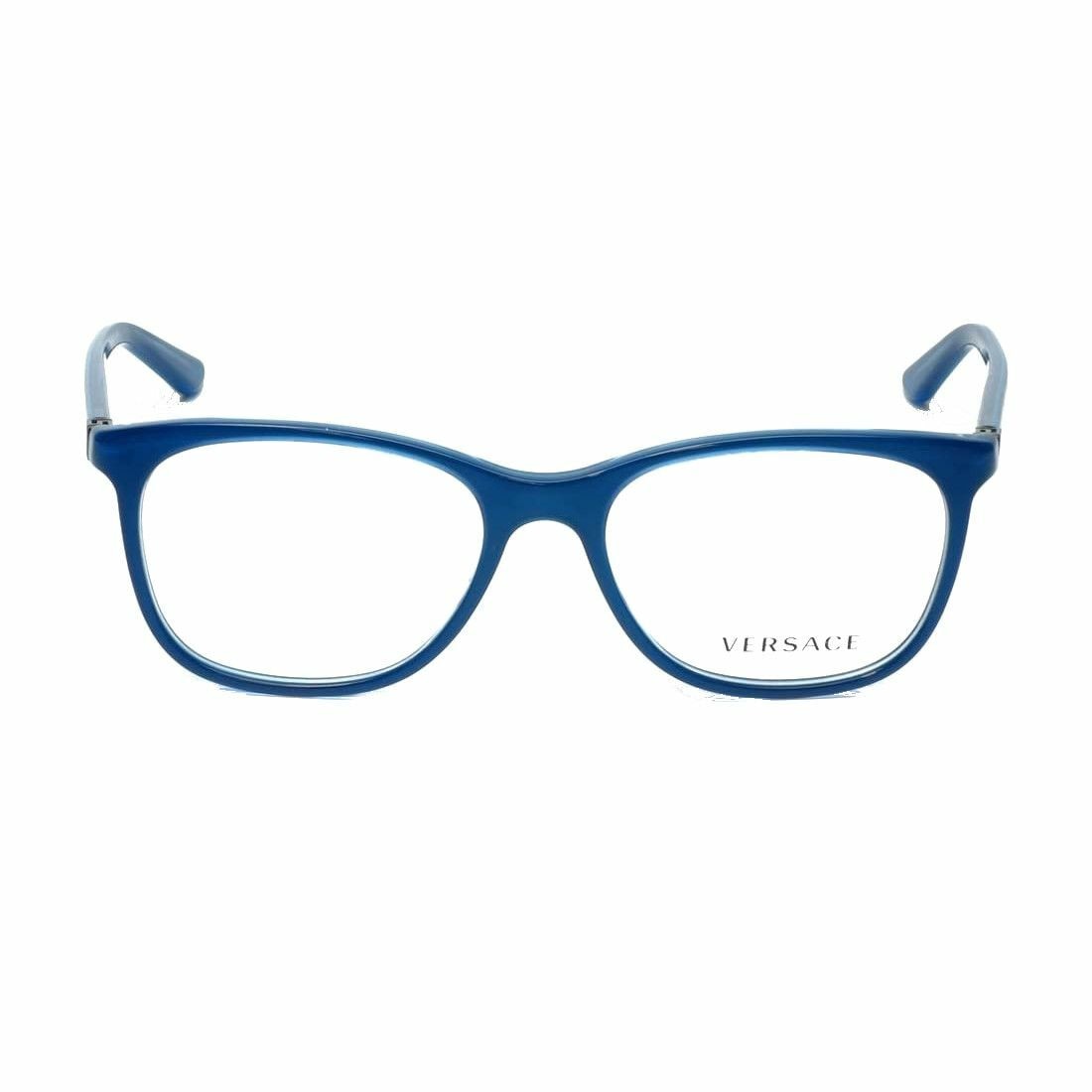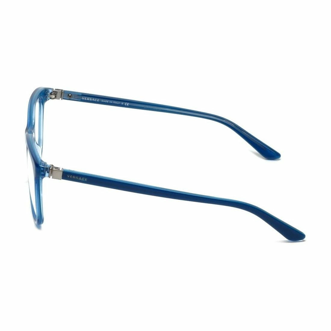 The Versace VE3187-5056 Transparent Blue Square Men's Plastic Eyeglasses are a stunning addition to any man's eyewear collection. Crafted with precision and style, these eyeglasses are designed to reflect the latest trends in contemporary designer eyewear. The transparent blue frame adds a unique touch, making them not only functional but also a fashion statement.