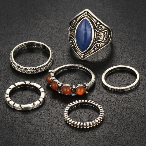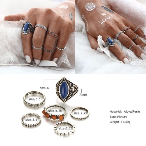 Dropship Women Bohemian Vintage Silver Stack Rings Above