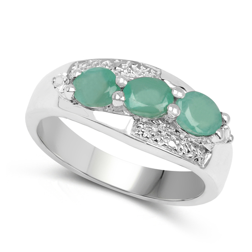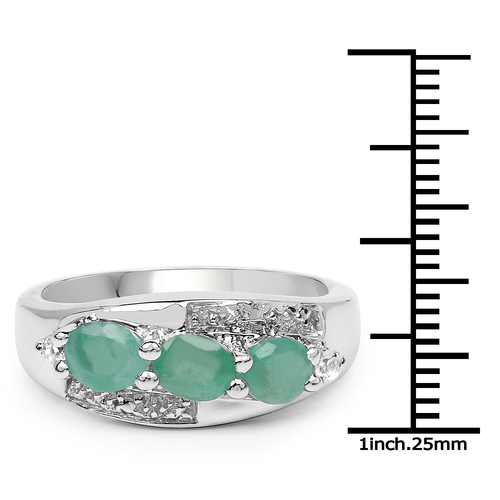 0.68 Carat Genuine Emerald and White Topaz .925 Sterling Silver Ring