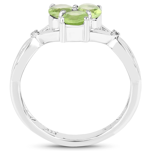 0.73 Carat Genuine Peridot and White Diamond .925 Sterling Silver Ring