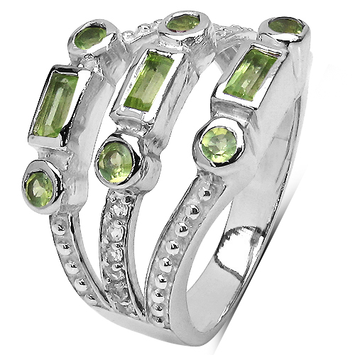 Dropship 0.95 Carat Genuine Peridot & White Topaz .925 Sterling Silver Ring
