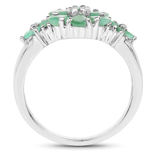 Dropship 1.11 Carat Genuine Emerald & White Topaz .925 Sterling Silver Ring
