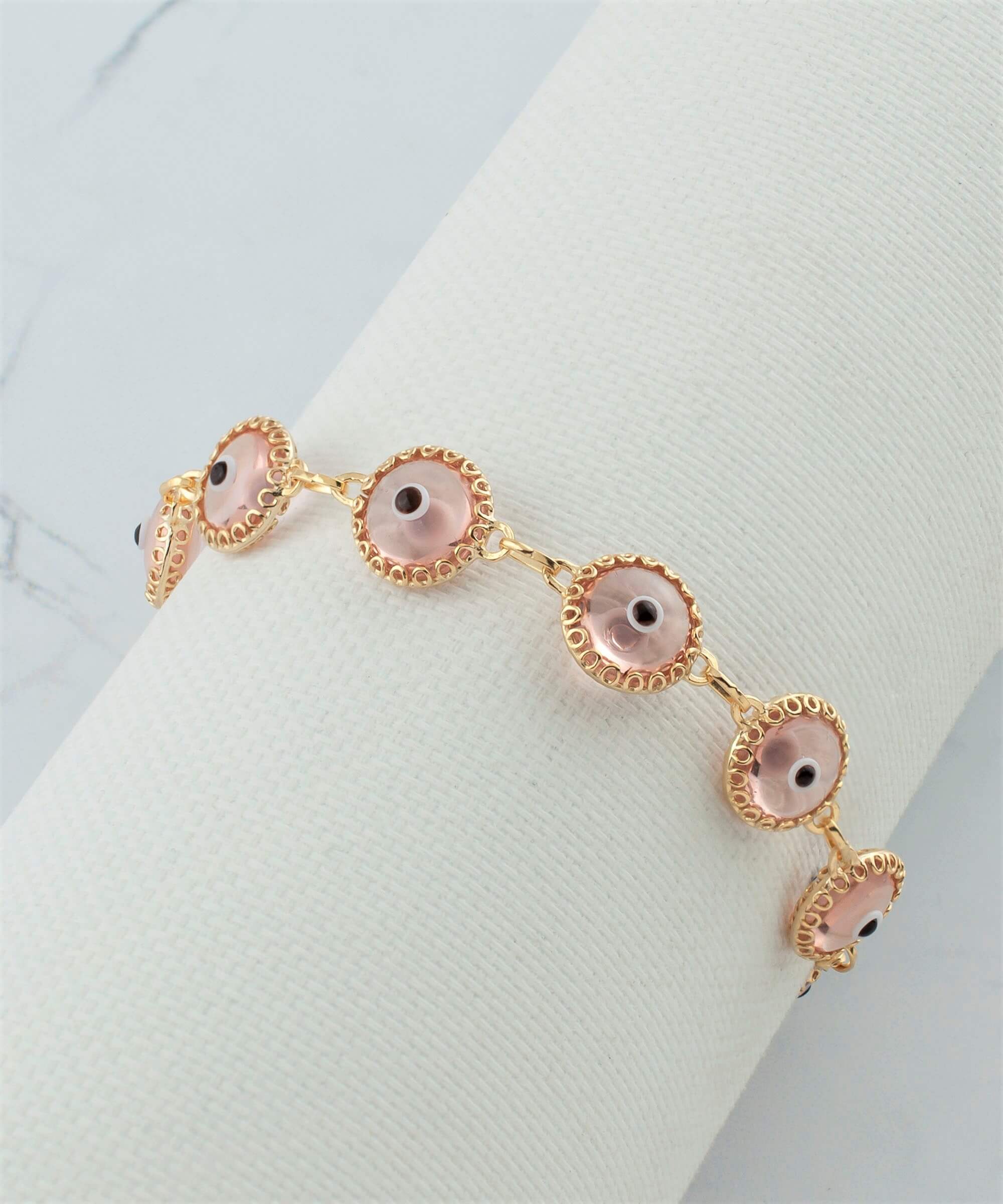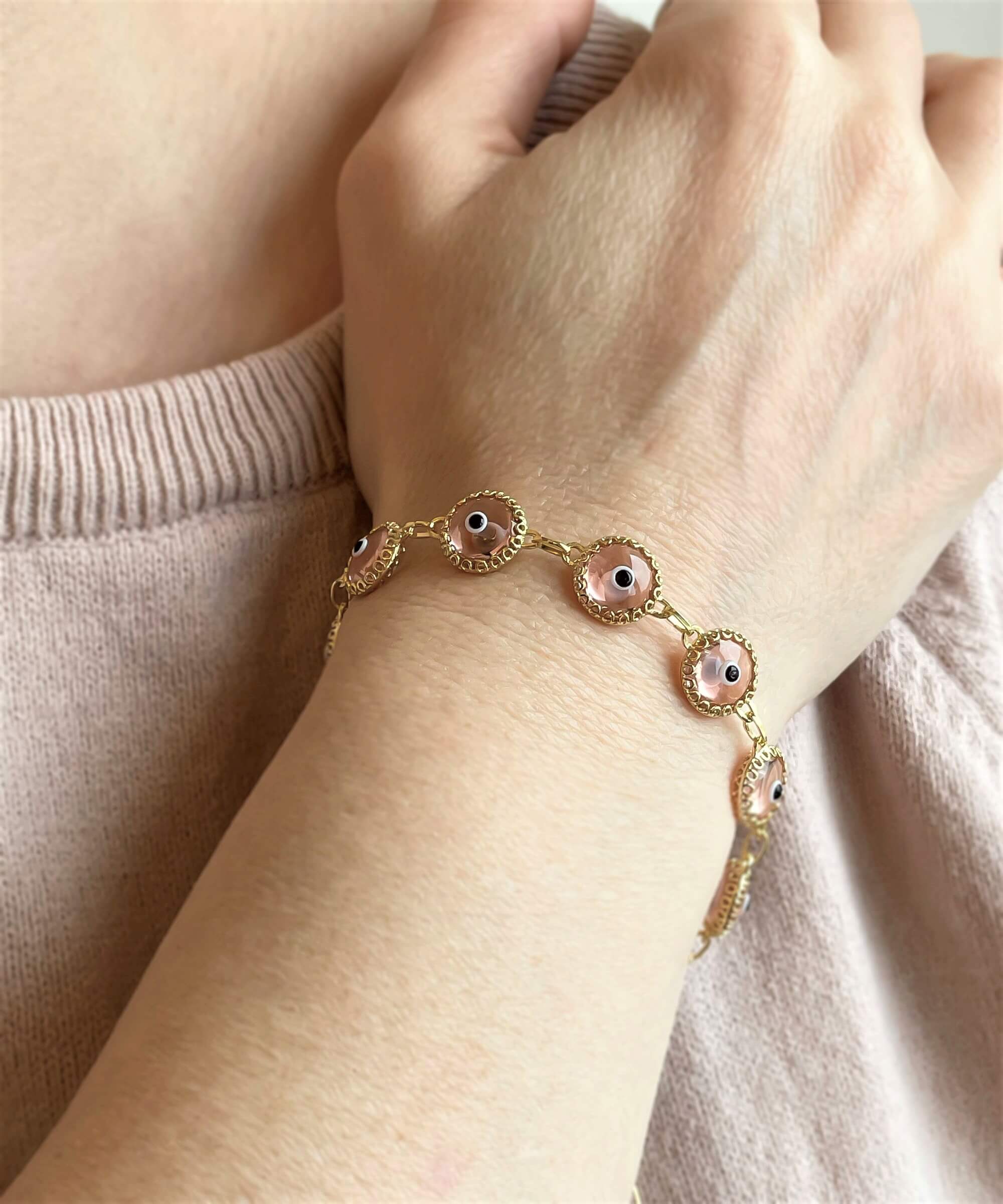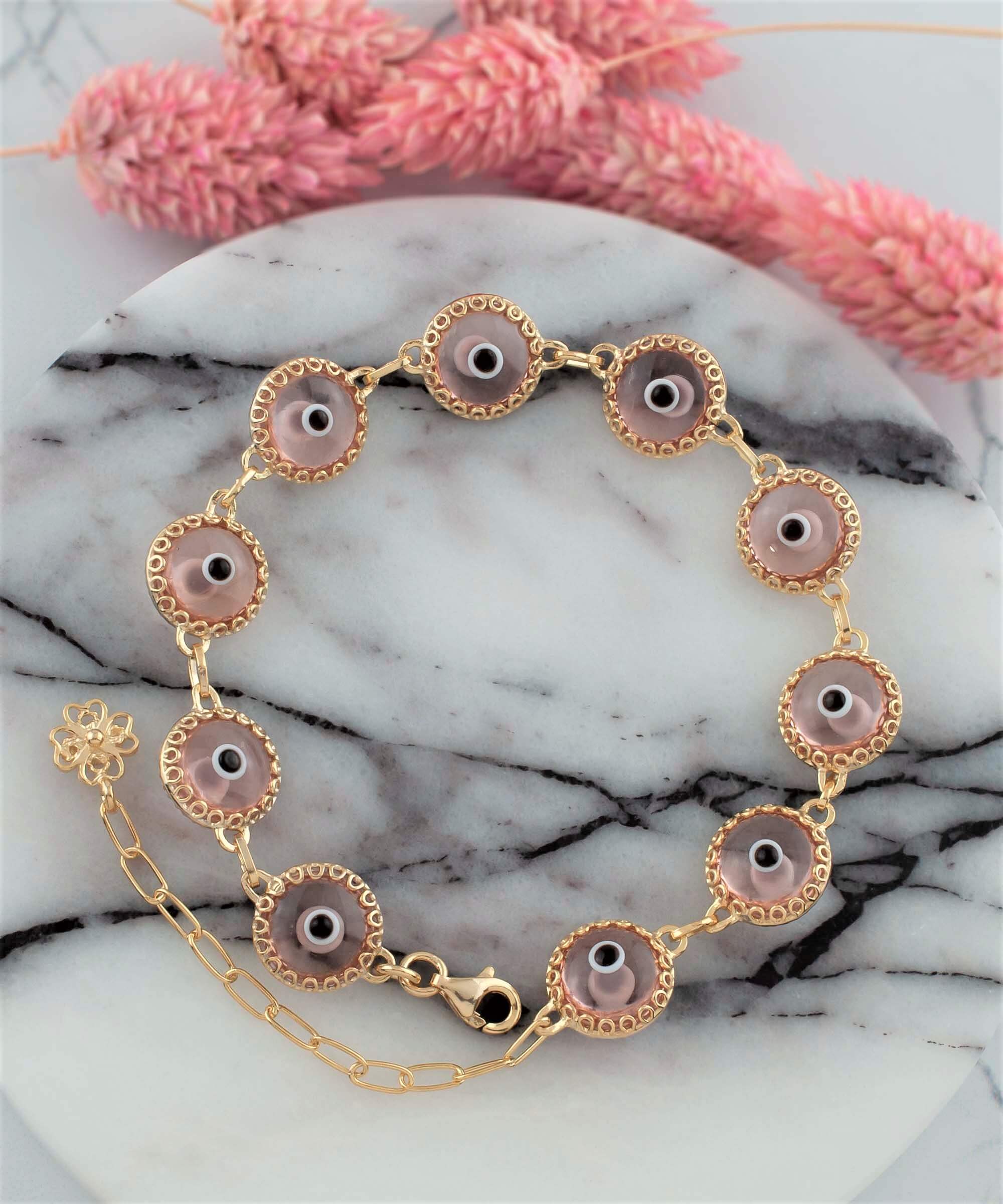 Choosing the 10 Beads Pink Evil Eye Women Gold Plated Silver Link Bracelet means investing in a piece of jewelry that is not only fashionable but also rich in cultural significance. It is perfect for women who appreciate unique designs and the protective qualities of the Evil Eye. This bracelet is a versatile accessory that can be worn on various occasions, from casual outings to formal events.