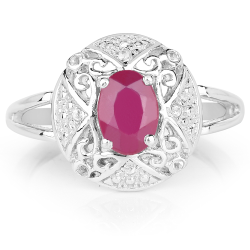1.04 Carat Glass Filled Ruby and White Topaz .925 Sterling Silver Ring