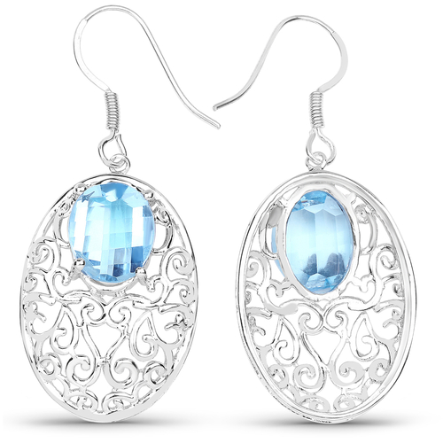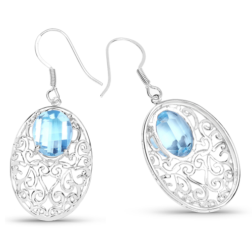 10.72 Carat Genuine Blue Topaz .925 Sterling Silver Earrings