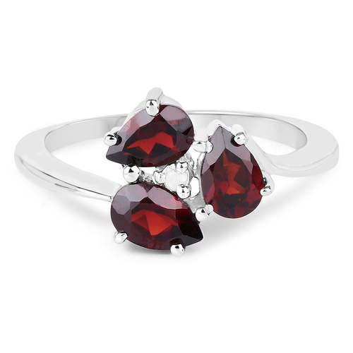Dropship 1.37 Carat Genuine Garnet and White Topaz .925 Sterling Silver Ring