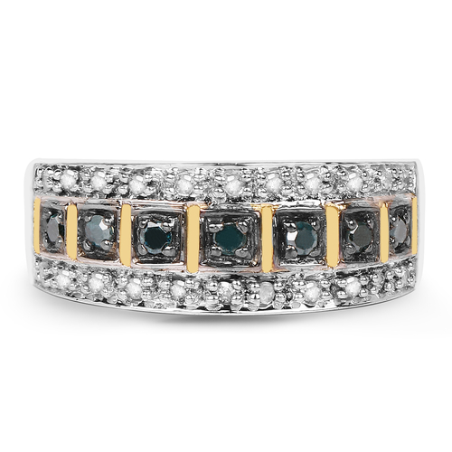 14K Yellow Gold Plated 0.27 Carat Genuine Blue Diamond and White