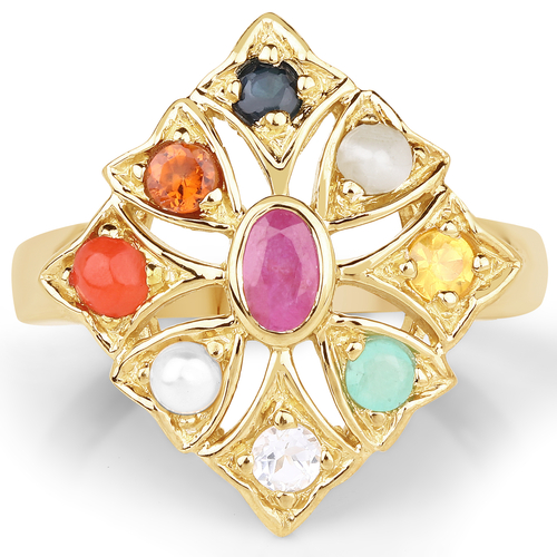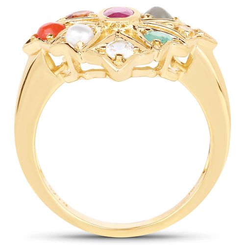 14K Yellow Gold Plated 1.26 Carat Genuine Multi Stone .925 Sterling