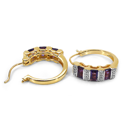 14K Yellow Gold Plated 1.88 Carat Genuine Amethyst & White Topaz .925