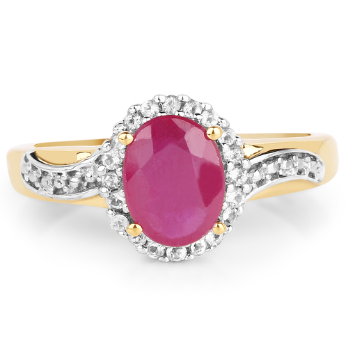 14K Yellow Gold Plated 1.90 Carat Glass Filled Ruby and White Topaz