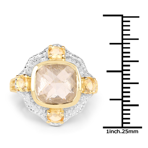 14K Yellow Gold Plated 4.07 Carat Genuine Golden Rutile and Citrine