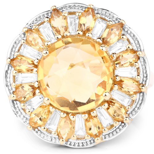 14K Yellow Gold Plated 4.89 Carat Genuine Citrine and White Topaz .925