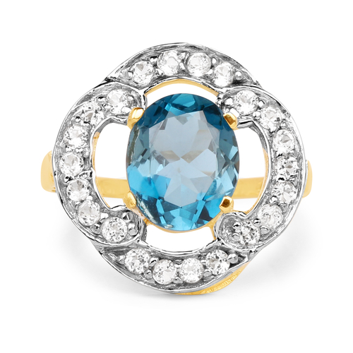 14K Yellow Gold Plated 5.13 Carat Genuine London Blue Topaz & White