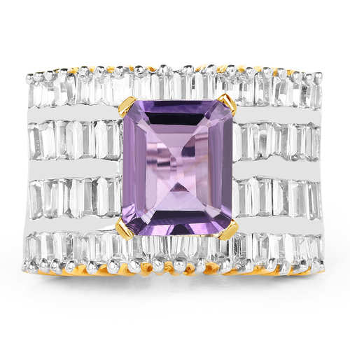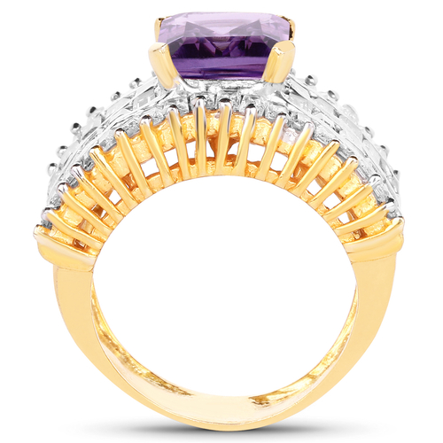 14K Yellow Gold Plated 5.15 Carat Amethyst and White Cubic Zircon