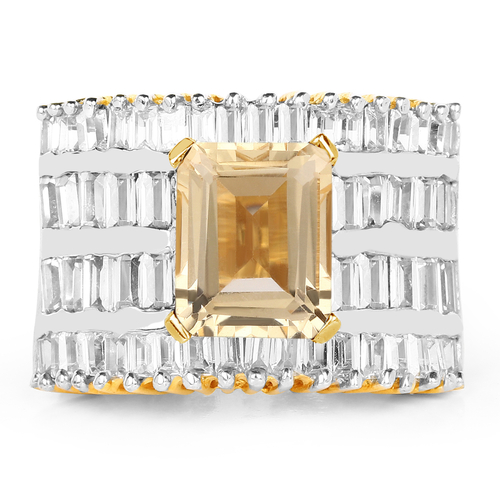 14K Yellow Gold Plated 5.25 Carat Citrine and White Cubic Zircon Brass