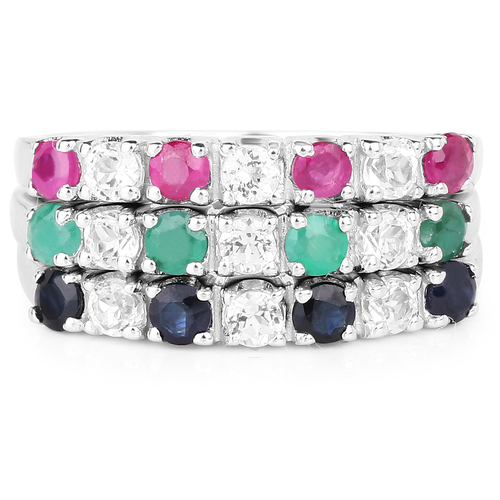 Dropship 1.56 Carat Genuine Multi Stone .925 Sterling Silver Ring