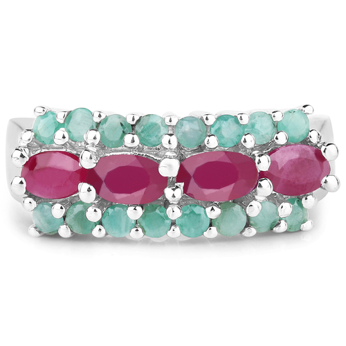 1.56 Carat Genuine Ruby and Emerald .925 Sterling Silver Ring