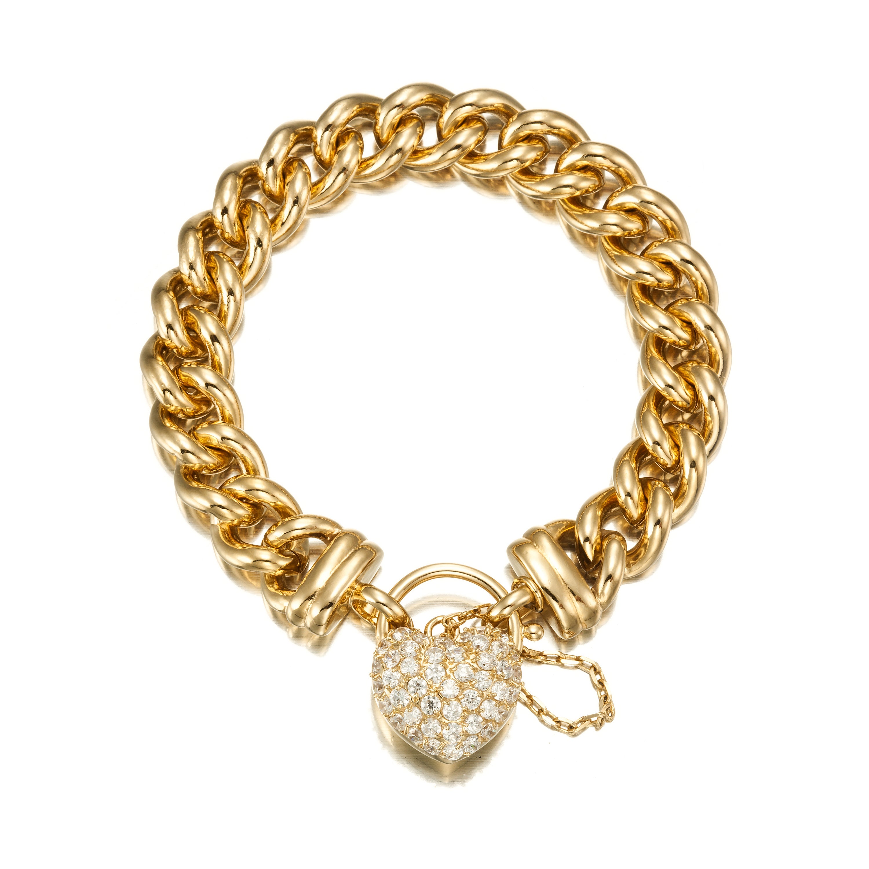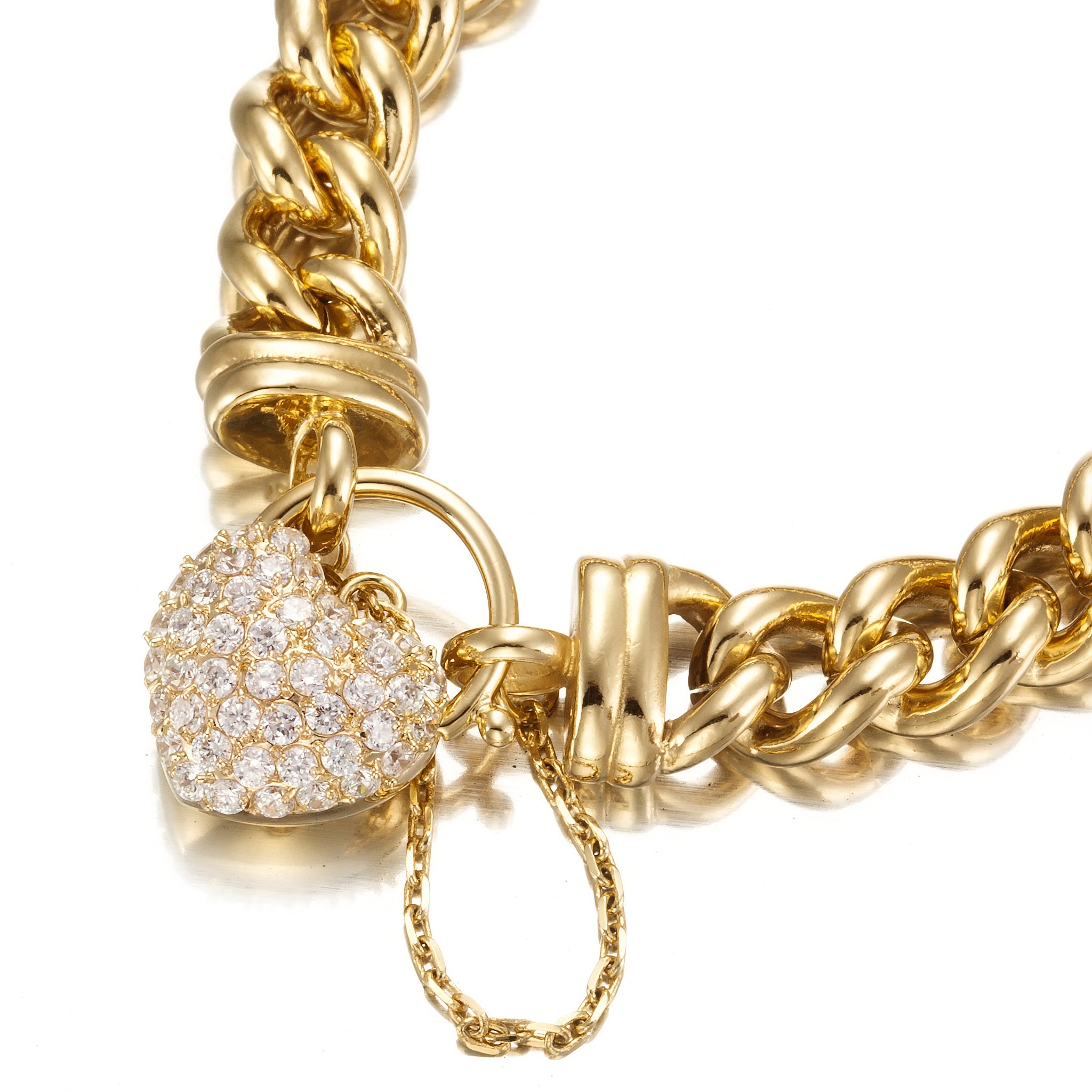 18ct Heavy Yellow Gold Plated 12mm Euro Curb Chain Bracelet Featuring a Simulated Diamond Locket - USA Made