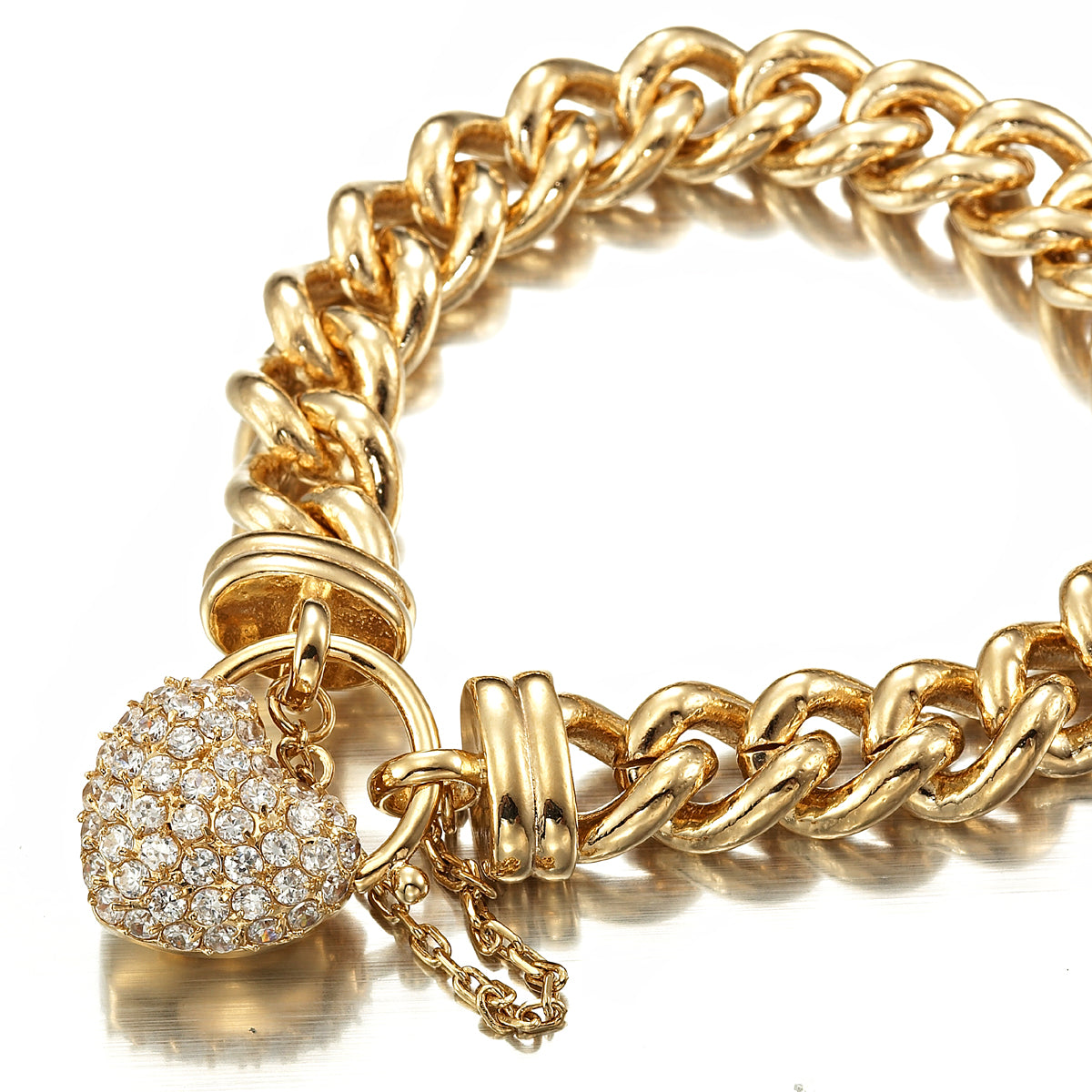 In summary, our 18ct Heavy Yellow Gold Plated 12mm Euro Curb Chain Bracelet featuring a simulated diamond locket is a must-have accessory for anyone who appreciates quality jewelry. With its stunning design, customizable lengths, and durable materials, this bracelet is sure to become a favorite in your collection.