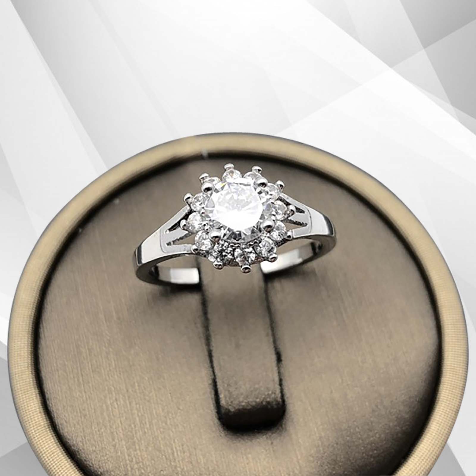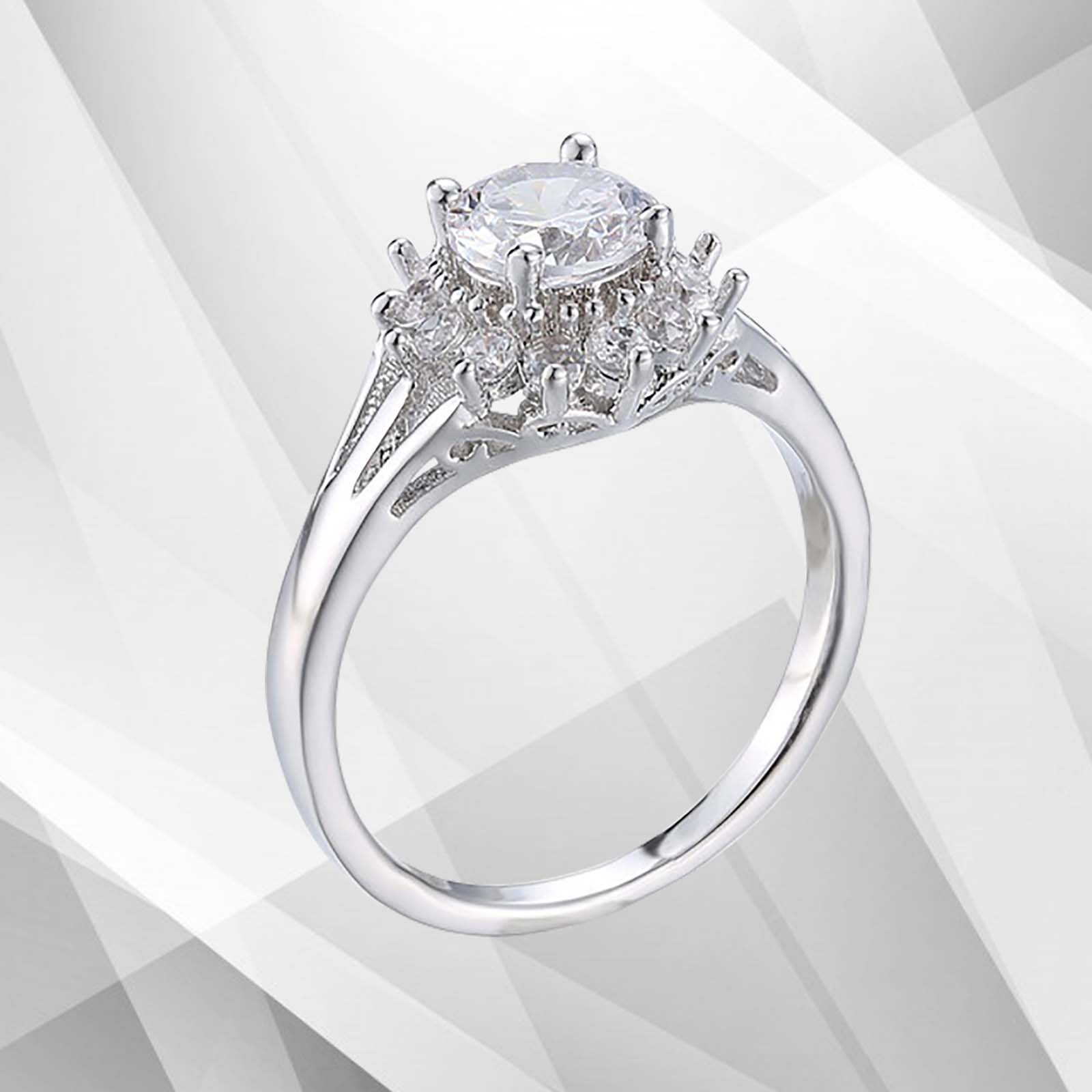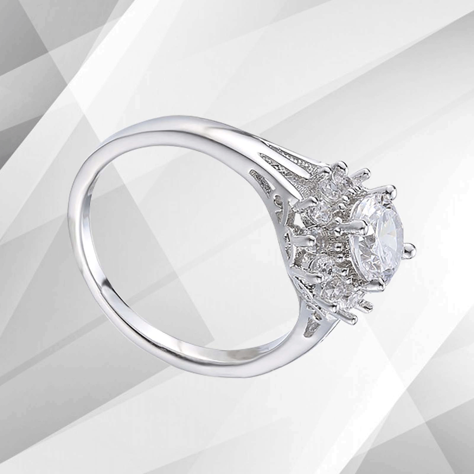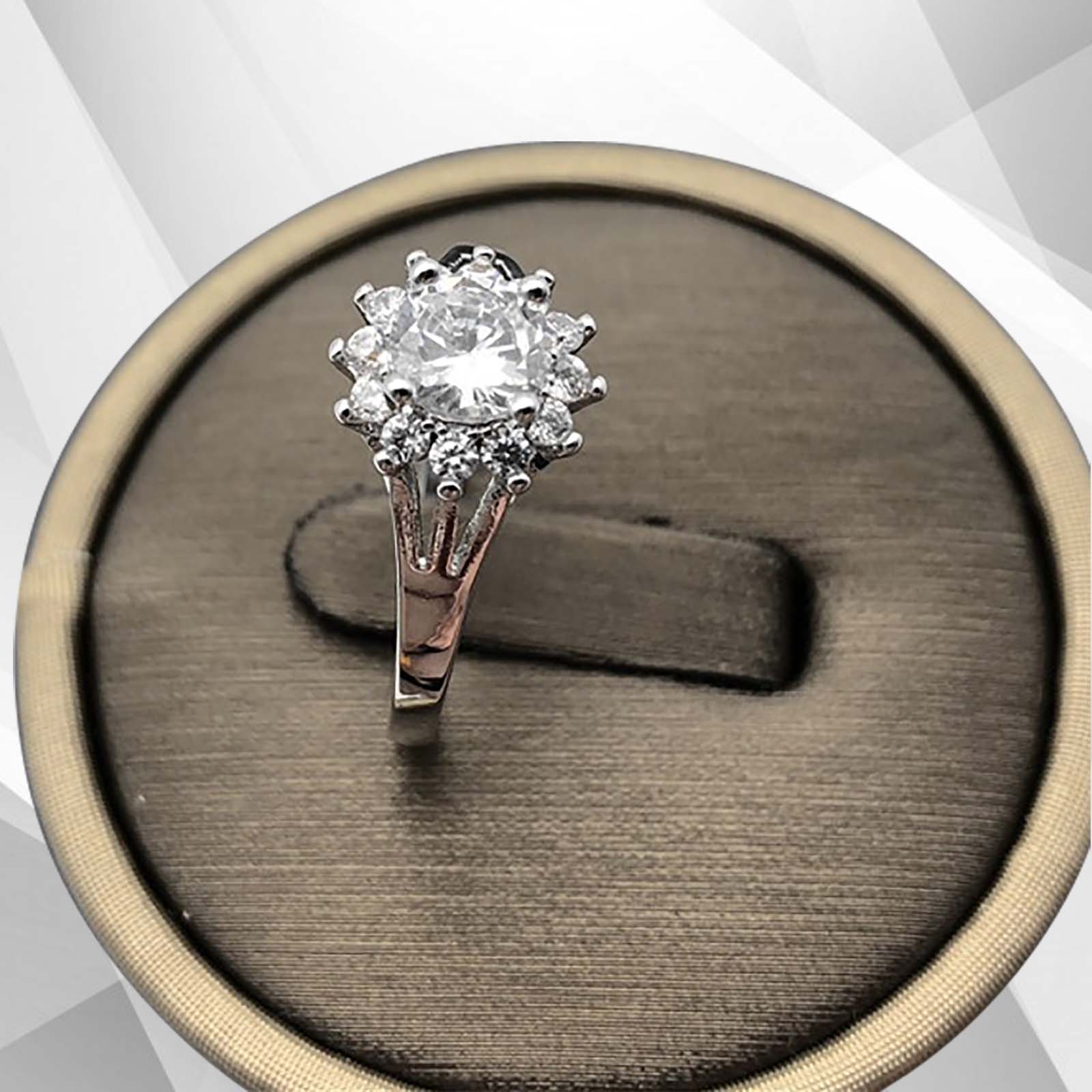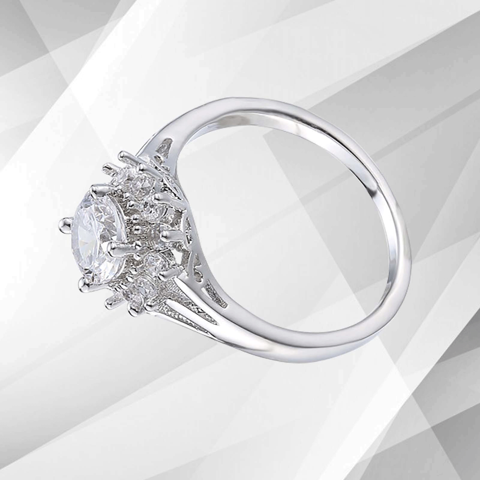 This ring is made from 100% brass with a 9Ct white gold overlay, providing both durability and a luxurious appearance. The main stone is a lab-grown Cambodian CZ diamond, which boasts a D color and AAA clarity. With a total carat weight of approximately 1.80Ct and 13 stones in total, this ring is designed to impress.