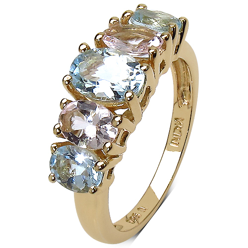 18K Yellow Gold Plated 2.17 Carat Genuine Aquamarine & Morganite .925