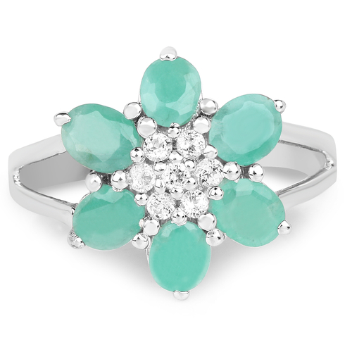 Dropship 1.93 Carat Genuine Emerald and White Topaz .925 Sterling Silver Ring