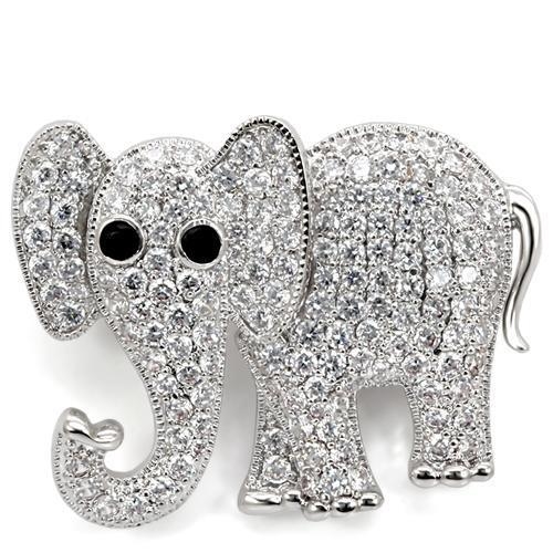 1W125 Imitation Rhodium Brass Brooch featuring a black diamond AAA Grade CZ stone, elegantly designed for versatile wear.