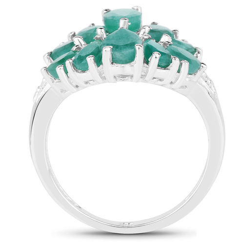 Dropship 2.21 Carat Genuine Emerald and White Diamond .925 Sterling Silver Ring