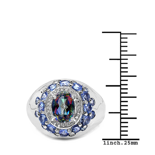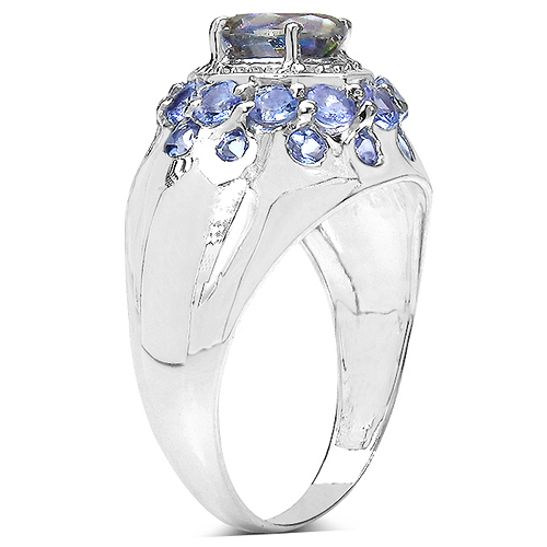 Dropship 2.16 Carat Genuine Mystic Topaz & Tanzanite .925 Sterling Silver Ring