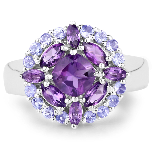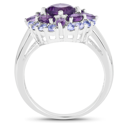 Dropship 2.19 Carat Genuine Amethyst and Tanzanite .925 Sterling Silver Ring