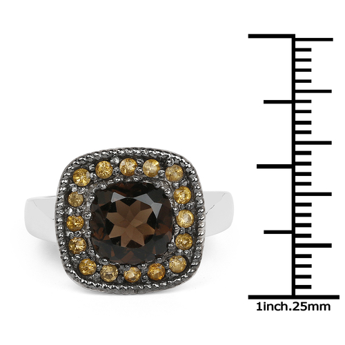 Dropship 2.55 Carat Genuine Smoky Quartz and Citrine .925 Sterling Silver Ring