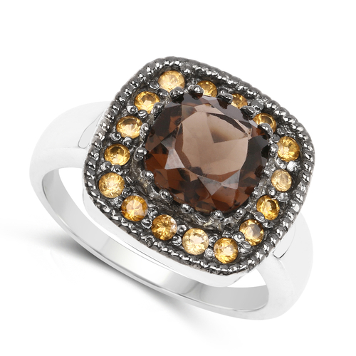 2.55 Carat Genuine Smoky Quartz and Citrine .925 Sterling Silver Ring
