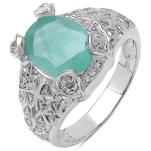 Dropship 2.52 Carat Genuine Emerald & White Topaz .925 Sterling Silver Ring