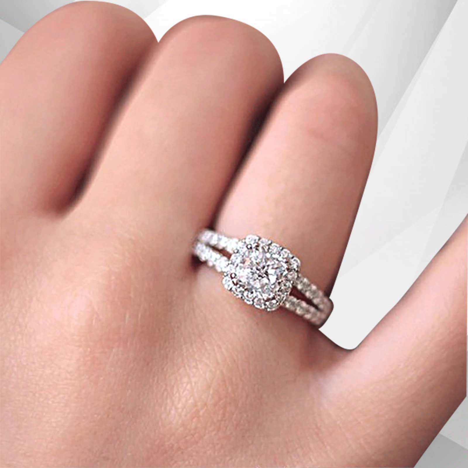 Make your engagement unforgettable with our stunning 2.5Ct Round-Cut Diamond Cushion Halo Bridal Engagement Ring. This ring is not just a piece of jewelry; it is a promise of love and a commitment to a beautiful future together.